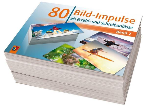 Unterrichtsmaterial für Lehrer und Lehrerinnen an Grundschulen, Fach Deutsch, Klasse 2-4 Auch in diesem 2. Band regen 80 neue Bilder die Schüler und Schülerinnen zum Erzählen und Schreiben an. Die abwechslungsreichen und fantasiebeflügelnde Farbbilder machen es ihnen leicht, Gedanken und Träume zu den Bildern auszudrücken. Die Bild-Impulse sind in mehrere Bereiche eingeteilt: „Durch die Luft‘, „Abenteuerliches‘; „Fantasie-Welten‘; „Kurioses‘; „Wenn Tiere sprechen könnten‘, „Meine Reise nach …‘, „Tierische‘; „Aus dem Alltag‘, „Sportlich‘; „Mutig; mutig!‘, „Ich träume von …‘, „Natur‘ und „Erfindungen‘. Dabei haben Sie als Lehrkraft viele Möglichkeiten, dieses Kartenset im Unterricht einzusetzen: Impulsfragen und Begriffe auf den Kartenrückseiten unterstützen Sie und die Kinder dabei, ins Gespräch zu kommen. Oder Sie legen einige Bilder als Inspiration zum freien Schreiben aus. Wer möchte, kann den Geschichtenanfang mit den passenden Reizwörtern auf der Kartenrückseite nutzen, um eine Geschichte weiterzuschreiben. Durch das große Format eignen sich die Bildkarten auch zur Betrachtung in größeren Gruppen. Zudem finden Sie im mitgelieferten Begleitheft alle Bilder im kopierfreundlichen Kleinformat sowie zusätzliche Anregungen für Ihren Unterricht. Ob als Einstieg im Morgenkreis, als Schreibimpuls für Geschichten, zur Sprachförderung oder für die Abschlussreflexion – die Möglichkeiten sind so vielfältig wie die Bilder selbst!