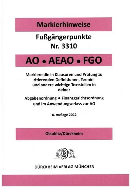 Investieren Sie in Ihren Erfolg und bestellen Sie die *Dürckheim’schen Markierhinweise* zur ABGABENORDNUNG & FGO 2022 noch heute! Ihr Weg zum erfolgreichen Steuerberater beginnt hier.