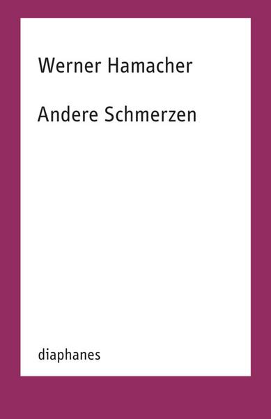 Der Schmerz ist eine Erfahrung ohne Inhalt und ohne Möglichkeit zur Anklage, im Schmerz kollabieren die Kategorien und damit jede Möglichkeit freier Empfindung, der Schmerz verwüstet das Bewusstsein und nimmt dem Subjekt jede Fähigkeit, auf eine Welt von Objekten einzuwirken. Wer leidet, der erfährt nicht die von ihm gesetzte und zusammengesetzte Welt, er erfährt sich selbst nicht als ihr konstituierendes Subjekt. Im kantischen Sinn erfährt er nichts als das Erfahren selbst und damit ein Geschehen, das jedem Objekt, aber auch jedem Subjekt der Erfahrung vorausgeht. Deshalb bleibt das Denken, das sich dem Schmerz und in diesem sich selbst zuwendet, von Anfang an hinter sich selbst zurück und sich selber voraus, von sich als einem anderen Denken und einem anderen Schmerz isoliert. Der Band vereinigt zwei späte Texte Werner Hamachers, die einen von Pindar über Sophokles zur Stoa, von Kant über Hegel bis zu Valéry reichenden philosophischen Parcours abschreiten und die vielleicht härteste Grenzlinie des Denkens umreißen.