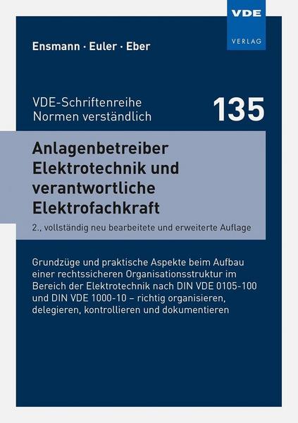 Alle Unternehmen, die elektrotechnische Einrichtungen planen, errichten, betreiben oder instand halten, sind gut beraten, wenn sie eine verantwortliche Elektrofachkraft nach DIN VDE 1000-10 bzw. einen Anlagenbetreiber Elektrotechnik nach DIN VDE 0105-100 bestellen. In der Praxis vieler Unternehmen ist es allerdings häufig so, dass der Unternehmer und die oberen Führungskräfte selbst keine Elektrofachkräfte sind und deshalb die Aufgaben und Verantwortlichkeiten im Bereich der Elektrotechnik nicht selbst übernehmen können. Der Lösungsansatz für diesen Fall ist die durchdachte Organisation des Elektrobereichs mit verantwortlicher Elektrofachkraft bzw. Anlagenbetreiber Elektrotechnik, welche(r) vom Unternehmer dann mit der fachlichen Leitung des elektrotechnischen Betriebs oder Betriebsteils betraut wird. • Die Notwendigkeit, je nach Unternehmensgröße, eine oder mehrere verantwortliche Funktionsträger zu beauftragen, um den elektrotechnischen Unternehmensbereich rechtssicher zu organisieren, wird von den Autoren deutlich herausgearbeitet. • Die juristischen und fachpraktischen Grundlagen der Organisation des elektrotechnischen Betriebsteils werden erläutert und zudem konkrete, in der betrieblichen Praxis erprobte Arbeitshilfen für die praktische Umsetzung vermittelt. • Dieses Buch ist genau der richtige Ratgeber für Elektrofachkräfte, verantwortliche Elektrofachkräfte und Anlagenbetreiber Elektrotechnik sowohl aus kleinen und mittleren Unternehmen als auch aus Konzernen sämtlicher Branchen, die Leitungsfunktionen im elektrotechnischen Bereich übernommen haben oder künftig übernehmen sollen. • Auch für Anlagenverantwortliche, Fachkräfte für Arbeitssicherheit, Sicherheitsingenieure und nicht zuletzt für Unternehmensleitungen, die entsprechende Pflichtenübertragungen aussprechen müssen, sind nützliche Informationen und Hintergrundwissen zu dem vielschichtigen Thema „Organisation des Elektrobereichs‘ enthalten.