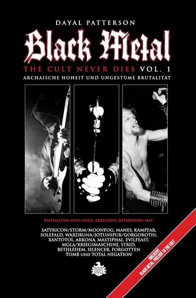 ‚BLACK METAL: THE CULT NEVER DIES VOLUME ONE‘ ist das zweite Buch aus Dayal Pattersons Reihe ‚Black Metal Cult‘, welche die Entwicklung der wohl extremsten aller Metal-Spielarten nachzeichnet. Enthalten sind neue, exklusive Interviews mit: SATYRICON/STORM/MOONFOG, MANES, KAMPFAR, SOLEFALD, WARDRUNA, JOTUNSPOR/GORGOROTH, XANTOTOL, ARKONA, MASTIPHAL, EVILFEAST, MGLA/KRIEGSMASCHINE, STRID, BETHLEHEM, SILENCER, FORGOTTEN TOMB und TOTAL NEGATION, dazu Kapitel über den Maler Theodor Kittelsen und seinen Einfluss auf die Ästhetik des Black Metal. Das Buch enthält außerdem BLACK METAL: PRELUDE TO THE CULT, den Mini-Begleiter zu ‚Black Metal: Evolution Of the Cult‘ mit Ergänzungen zum Hauptband, u.a. zu MAYHEM, ARCHGOAT, CLANDESTINE BLAZE, TAAKE, GORGOROTH, IMPALED NAZARENE, BEHERIT, 1349/SATYRICON, MANIAC/SKITLIV, ENTHRONED, HORNA/BEHEXEN, SIGH, MARDUK und HADES.