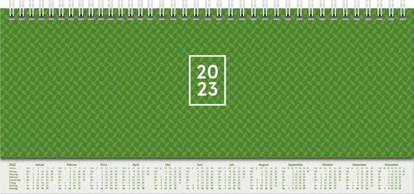 Der Kalender ist als Tischkalender mit 2 Seiten pro Woche aufgebaut. Er bietet zusätzlich Jahres- und Monatsübersichten sowie Platz für Notizen.