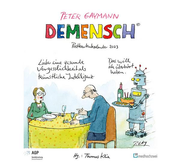 Sie ertappen uns im Alltag und bezeichnen urkomische Situationen mit wunderbaren Cartoons – der Gerontologe Thomas Klie und der Cartoonist Peter Gaymann. Maskenpflicht, künstliche Intelligenz, osteuropäische Haushaltshilfen, Alltagssituationen und selbst die Kirche nehmen sie aufs Korn – immer respekt- und liebevoll. Auch der 11. Jahrgang des Demensch-Kalenders hat es faustdick hinter den Ohren – die Inspiration des Zeichners und die Erfahrung des Gerontologen schaffen einmal mehr großartige Cartoons, die ein ganzes Jahr unsere Resilienz im kreativen Umgang mit Demenz stärken.