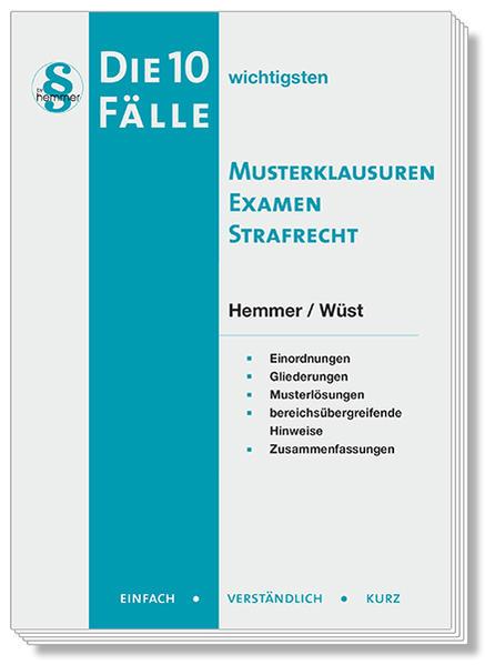Das Repetitorium hemmer ist für seine Trefferquote bekannt. Das zeigt sich auch in den Musterklausuren: Teilweise wurden die ausgewählten Fälle später zu nahezu identischen Originalexamensfällen. Die Themenkreise sind weiter hochaktuell. Examensklausuren haben eine eigene Struktur. Der Ersteller konstruiert Sachverhalt und Lösung nach bestimmten Regeln, die es zu erfassen gilt. Objektiv muss die Klausur wegen der Notendifferenzierung anspruchsvoll, aber lösbar sein, eine Vielzahl von Problemen beinhalten und bei der Lösung ein einheitliches Ganzes ergeben. Subjektives Merkmal ist, wie der Ersteller die objektiven Merkmale gewichtet hat. Hier zeigt sich sein Ideengebäude, welches zu erfassen die wesentliche Aufgabe bei der Klausurbewältigung ist. Inhalt: Aussagedelikte Unbefugter Gebrauch von Fahrzeugen Betrug Diebstahl Urkundendelikte Nötigung Raub Räuberische Erpressung Begünstigung Strafvereitelung Hehlerei Straßenverkehrsdelikte Brandstiftungsdelikte Qualifikationen des Diebstahls Unterschlagung Scheckkartenmissbrauch Computerbetrug