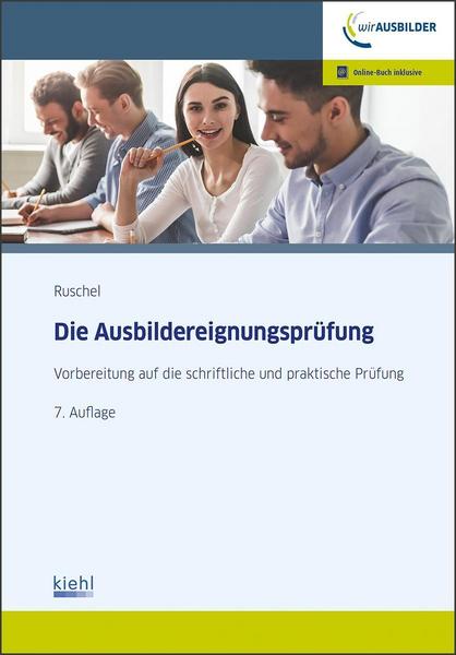 Die ideale Prüfungsvorbereitung. Klar, verständlich und praxisorientiert unterstützt Sie dieses Buch bei der Vorbereitung auf eine erfolgreiche Ausbildereignungsprüfung. Es eignet sich ideal zum Nachlernen und Vertiefen des Stoffes aus dem Lehrgang als auch zum Selbststudium. Neben einer Einführung mit Tipps zum systematischen Lernen unterstützen Sie dabei Ausbildungssituationen als Fallstudien und Rollenspiele sowie Situationsbeschreibungen mit Übungsaufgaben. Drei komplette Aufgabensätze, die angelehnt sind an die Originalprüfungen der IHK, helfen Ihnen mit über 180 Aufgaben inklusive Lösungen, sich optimal auf den schriftlichen Teil der Prüfung vorzubereiten. Die zum 01.01.2020 in Kraft getretenen Änderungen im BBiG sind berücksichtigt. Abgerundet wird das Buch durch Skizzen für praktische Unterweisungen und Beispiele für Präsentationen von Ausbildungssituationen für den praktischen Teil der Prüfung. Inklusive Online-Training und Online-Buch in meinkiehl. Aus dem Inhalt 1. Wie Erwachsene lernen – Anregungen zum systematischen Lernen 2. Ausbildungssituationen als Fallstudien und Rollenspiele 3. Situationsbeschreibungen mit Übungsaufgaben 4. Der schriftliche Teil der Ausbildereignungsprüfung 5. Der praktische Teil der Ausbildereignungsprüfung 6. Lösungsvorschläge zu den Fallstudien und Rollenspielen 7. Lösungen zu den Situationsbeschreibungen mit Übungsaufgaben 8. Lösungen zu den Aufgabensätzen Stichwortverzeichnis
