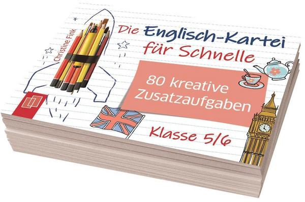Karteikarten für Lehrer und Lehrerinnen an Hauptschulen, Realschulen und Gesamtschulen, Fach: Englisch, Klasse 5/6 +++ „Ich bin fertig, was soll ich machen?‘ – in jeder Klasse gibt es Schüler und Schülerinnen, die früher oder später diese Frage stellen. Nun haben Sie ruckzuck die perfekte Antwort parat! In dieser sofort einsetzbaren Kartei finden Sie 80 Zusatzaufgaben zur Differenzierung im Englischunterricht – rund um die klassischen Themen und Kompetenzen der Klassen 5 und 6. Die Kartei beinhaltet z. B. Rätsel, Sprachspiele und kreative Schreibanlässe, daneben finden sich motivierende Aufgaben zum Thema Landeskunde ebenso wie Grammatikübungen zur Wiederholung und Festigung. Zusatzmaterial wird dabei nicht benötigt. Die Kartei ist so konzipiert, dass sich sämtliche Angebote in etwa 5-10 Minuten bearbeiten lassen und sich ideal zur stillen Einzelarbeit eignen: Alle Aufgaben sind selbsterklärend und wo nötig finden die Lernenden auf der Rückseite der Karten Lösungen zur Selbstkontrolle. Und während Ihre „Schnellen‘ nun mit dem Freiarbeitsmaterial beschäftigt sind, bleibt für Sie mehr Zeit, sich um den Rest der Klasse zu kümmern.