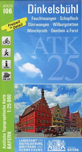 Wer es genau wissen will greift zur Landkarte ATK25. Diese detailreiche Kartenserie im Maßstab 1:25000 bildet das komplette Verkehrsnetz ab und ist bestens als Wanderkarte und Radwanderkarte geeignet. 237 Einzelblätter stellen Bayern flächendeckend dar. Ein Kartenblatt umfasst ca. 21 km x 22 km. Was bietet die ATK25? • individuelle Gestaltung der Freizeit als Wanderkarte oder Radkarte • farbige Hervorhebung aller ausgeschilderten Wanderwege und Radwege • sichere Orientierung beim Wandern und Radeln auch abseits der markierten Routen • umfangreiche Hinweise auf Freizeiteinrichtungen und Sehenswürdigkeiten • anschauliche Wiedergabe der Geländeformen Das Kartenblatt enthält u.a. folgende Orte: Feuchtwangen, Schopfloch, Dürrwangen, Wilburgstetten, Mönchsroth, Dentlein a.Forst
