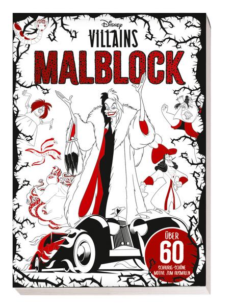 Ob Cruella de Vil, Malefiz oder der machthungrige Löwe Scar – hier sind die Bösewichte der beliebtesten Disney-Filme versammelt und können in mehr als 60 schaurig-schönen Motiven mit Farbe gefüllt werden.