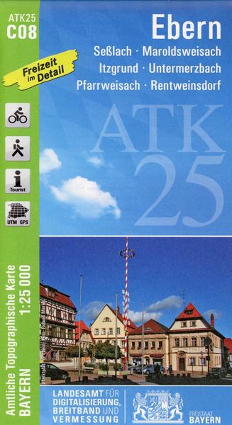 Wer es genau wissen will, greift zur ATK25. Diese Kartenserie im Maßstab 1:25000 bildet mit ihrer detaillierten Darstellung das komplette Verkehrsnetz mit allen Straßen und Wegen ab. 237 Einzelblätter stellen Bayern flächendeckend dar. Ein Kartenblatt umfasst ca. 21 km x 22 km. Was bietet die ATK25? • individuelle Freizeitgestaltung mit allen ausgeschilderten Wander- und Radwanderwegen • sichere Orientierung auch abseits der markierten Routen • umfangreiches Spektrum an Freizeiteinrichtungen und Sehenswürdigkeiten • anschauliche Wiedergabe der Geländeformen Das Kartenblatt enthält u.a. folgende Orte: Ebern, Seßlach, Maroldsweisach, Itzgrund, Untermerzbach, Pfarrweisach, Rentweinsdorf, Coburger Land, Haßberge