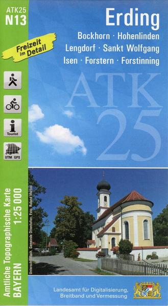 Wer es genau wissen will greift zur Landkarte ATK25. Diese detailreiche Kartenserie im Maßstab 1:25000 bildet das komplette Verkehrsnetz ab und ist bestens als Wanderkarte und Radwanderkarte geeignet. 237 Einzelblätter stellen Bayern flächendeckend dar. Ein Kartenblatt umfasst ca. 21 km x 22 km. Was bietet die ATK25? • individuelle Gestaltung der Freizeit als Wanderkarte oder Radkarte • farbige Hervorhebung aller ausgeschilderten Wanderwege und Radwege • sichere Orientierung beim Wandern und Radeln auch abseits der markierten Routen • umfangreiche Hinweise auf Freizeiteinrichtungen und Sehenswürdigkeiten • anschauliche Wiedergabe der Geländeformen. Das Kartenblatt enthält u.a. folgende Orte: Erding, Bockhorn, Hohenlinden, Lengdorf, Sankt Wolfgang, Isen, Forstern, Forstinning, Wörth, Kronthaler Weiher, Therme Erding, Isental, Markt Schwaben, Klettham, Langengeisling, Hofsingelding, Pretzen, Hörlkofen, Walpertskirchen, Ottenhofen, Pastetten, Ebersberger Forst, Großhaager, Maithenbeth, Tiergehege im Stadtpark Erding