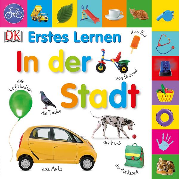 Großes Bildwörterbuch für die Kleinen! Ob beim Besuch der Feuerwehr oder beim Spaziergang durch den Zoo – auf den über 100 großen, realen Farbfotos entdecken Kinder tolle Motive rund um das Thema Stadt und lernen dabei ganz spielerisch neue Wörter. Das perfekte Bilderbuch zur Sprachförderung aus der DK Erfolgsreihe „Erstes Lernen“ – mit praktischem Griff-Register und extrastabil verarbeitet ! Erstes Lernen: In der Stadt – der ideale Begleiter für Kinder ab 12 Monaten beim Erlernen erster Wörter! Mit dem praktischen Griff-Register sehen die Kleinen alle Themen auf einen Blick und finden schnell ihre Lieblingsseite! Dank extrem stabiler Verarbeitung und Register oben und an der Seite haben Kinderhände hier alles im Griff und ihre Feinmotorik wird dadurch gleichzeitig gefördert. Bildwörterbuch mit tollen Extras: • Begriffsvielfalt für langen Beschäftigungsspaß. • Über 100 eindrucksvolle Farbfotos. • Mitmachelemente zur Sprachförderung. • Handlich, praktisch, gut. Das Bildwörterbuch zum Thema Stadt fördert Kleinkinder spielerisch in ihrer Entwicklung. Ideal auch als Geschenk – zum Beispiel zum ersten Geburtstag!