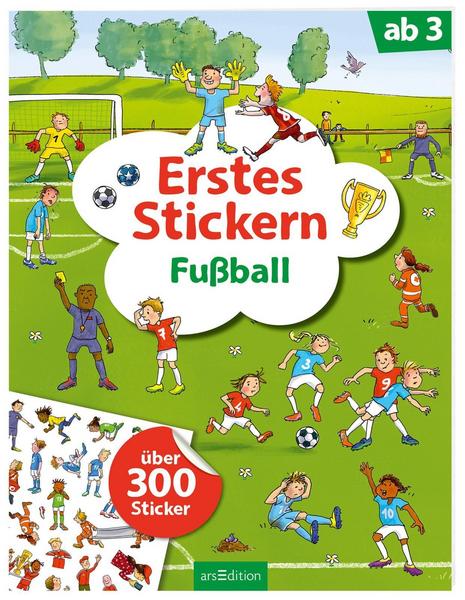 Für alle kleinen Fußball-Fans! Hier findest du alles, was kleine Fußball-Freunde erfreut: Auf den bunt illustrierten Seiten gibt es jede Menge Szenen aus der Fußball-Welt: beim Training, auf dem Turnier, in der Umkleidekabine und vieles mehr. Wähle aus über 350 Aufklebern und belebe die Szenen mit Spielern, Sportausrüstung und zahlreichen Zusatzstickern. Sportlicher Stickerspaß Das großformatige Stickeralbum bietet jede Menge Raum, der Fantasie freien Lauf zu lassen und eigene Fußball-Szenen zu erschaffen. Die Sticker lassen sich wieder ablösen und in verschiedensten Kombinationen einkleben. Ein schönes Buch, mit dem sich schon 3-Jährige selbstständig beschäftigen können – ob unterwegs, im Kinderzimmer oder bei der Oma. • Tolle Bilder: Die 14 Fußball-Szenen sind bunt illustriert und laden zum Stickern ein • Viele Sticker: In das Stickeralbum integriert sind Stickerbögen mit über 350 Aufklebern. Die Bögen sind perforiert zum leichten Heraustrennen • Super Motive: Hier finden sich jede Menge Fußball-Szenen vom Fußball-Platz bis zum Turnier und zur Umkleidekabine zum Bestickern • Ideal als Geschenk oder Mitbringsel: Über dieses Buch freuen sich alle Kinder ab 3 Jahren