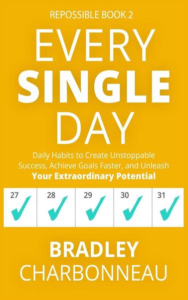 ‚Bradley is an inspiration and a leader. He reminds each of us that we too can become consistent and unstoppable.‘ – Deanne Welsh Brendan Burchard said, ‚You need, more than anything else, daily momentum. It’s the secret of all life happiness.‘ ‚Secret of all life happiness?‘ Whoa. Sounds pretty good. Just a little ‚daily momentum‘? No problem, right? But what if you’re stuck? Maybe you’ve been trying to break through but just can’t seem to get ahead. Every day seems like Groundhog Day: the same disappointment as yesterday. Or worse: one step forward and two steps back. Ugh. ‚Every Single Day‘ offers a simple prescription for building daily momentum that leads to true and powerful change that lasts. If you really want it, that is. HOW MUCH DO YOU WANT TO CHANGE? HOW BADLY DO YOU WANT SUCCESS? Bradley Charbonneau’s life drastically changed when, on Nov. 1, 2012, he accepted a challenge to Write Every Day for a month. What happened next changed his life in ways he could have never imagined. ‚Every Single Day‘ tells his story–and teaches you how to achieve what you’re after. If you’re ready to do the same, get your copy of ‚Every Single Day‘ now. Because you are after something. You know it. We all know it. We’re rooting for you.