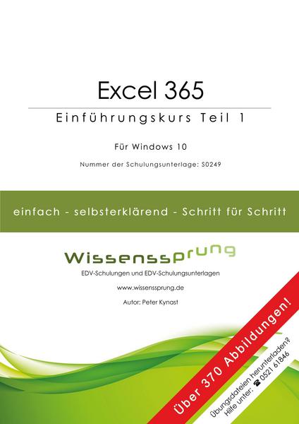 Excel 365 – Einführungskurs Teil 1 von Wissenssprung – 1000-fach in zahlreichen Bildungseinrichtungen bewährt – optimal zum Selbstlernen – über 370 Abbildungen! – alle Aufgaben Mausklick für Mausklick beschrieben – sehr detaillierte Schritt-für-Schritt-Anleitungen – leicht und sehr gut verständlich Inhalte – Grundlagen von Microsoft Excel – Programmaufbau und Bestandteile des Programmfensters – Dateneingabe, -veränderung und -korrektur – Formatieren (Gestalten) von Texten, Zahlen, Zellen und Tabellen – Maustechniken – Grundrechenarten: Addieren (Plus-Rechnen), Subtrahieren (Minus-Rechnen), Multiplizieren (Malnehmen), Dividieren (Teilen) – Speichern und Öffnen von Dateien – Kopieren und Einfügen von Zellen – automatisches Ausfüllen von Zellen mit Texten, Zahlen und Berechnungen (Formeln) – Ausdrucken von Tabellen – einfaches Addieren mehrerer Zahlen – Korrektur fehlerhafter Inhalte, Formate und Berechnungen – Hinweise auf häufige Fehler – Erklärung von Fachbegriffen
