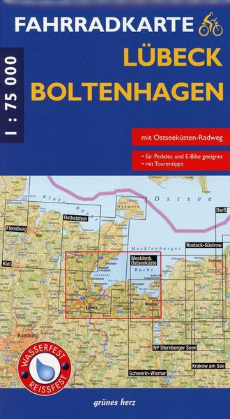 Die neue Fahrradkarte des Verlages grünes herz stellt die grenzüberschreitende Tourismusregion rund um die schleswig-holsteinische Hansestadt Lübeck, das mecklenburgische Ostseebad Boltenhagen sowie die Hansestadt Wismar dar. Rund um die reizvolle Lübecker Bucht erwarten die Gäste zahlreiche markante und abwechslungsreiche Landschaften. Die in der Karte komplett bzw. teilweise dargestellten Naturparke „Holsteinische Schweiz“ und „Lauenburgische Seen“; des Biosphärenreservates Schaalsee, die Naturschutzgebiete „Dummersdorfer Ufer“; „Dassower See, Insel Buchhorst und Graswerder“; „Harkenbäk“ sowie den idyllischen Klützer Winkel und die Insel Poel versprechen dem Gast ein Naturerlebnis pur. Die Region wird von einem dichten Radwege- bzw. Radwanderroutennetz durchzogen, welches sie für radelnden Gäste besonders interessant macht. Der in der Karte speziell hervorgehobene Ostseeküstenradeweg verbindet die Seebäder Schleswig-Holsteins und Mecklenburg-Vorpommerns miteinander. Auf farblich bebilderter Kartenrückseite werden die Regionen und Orte mit ihren Sehenswürdigkeiten sowie ausgewählte Tourenvorschläge beschrieben. Die Karte wurde in enger Zusammenarbeit mit den Tourismusvereinen der Region nach geographischen, landschaftlichen und touristischen Aspekten erarbeitet. Die Fahrradkarte stellt in ihrem Zentrum das Gebiet um die Hansestadt Lübeck und das Ostseebad Boltenhagen auf einem 90 x 63 cm großen Bogen im Maßstab 1 : 75.000 dar. Der Kartenausschnitt reicht von Malente und Kellenhusen im Norden bis zum Nordufer des Gr. Ratzeburger Sees, Rehna und Bobitz im Süden sowie vom Dieksee und Reinfeld im Westen bis nach Poel, Wismar und Dorf Mecklenburg im Osten. In dieser Neuerscheinung wurden separate Radwege / autofreie Strecken und auf öffentlichen Straßen und Wegen verlaufende Radrouten unterschiedlich gekennzeichnet. Gleichzeitig wurden Radstecken mit einer Kilometrierung (für Lang- und Kurzstrecken) versehen. So können Radtouristen schnell die Entfernungen zusammenrechnen und auf einen Blick erkennen, wo Radwege das Radeln außerhalb des motorisierten Verkehrs erlauben bzw. wo es sich nicht vermeiden lässt, gemeinsam mit diesem unterwegs zu sein. Die Oberflächenqualität der Radrouten und Radwege ist in drei Kategorien eingeteilt und dementsprechend gekennzeichnet. Außerdem sind Steigungen und für Radler ungeeignete bzw. gesperrte Wege und Straßen ausgewiesen. Um dem Nutzer den Verlauf der durch die Region führenden Radfernwege zu verdeutlichen, wurden diese mit einem farbigen Band unterlegt und die entsprechenden Markierungszeichen in die Karte aufgenommen. Lohnenswerte Ziele und Sehenswürdigkeiten sind durch Symbole gekennzeichnet und entsprechend beschriftet. Auf der Rückseite geben Text und Fotos Informationen zu den verschiedensten Regionen des Kartenschnittes und halten den einen oder anderen Ausflugstipp parat. Darüber hinaus findet der Nutzer hier lohnenswerte Radtourenvorschläge in unterschiedlichster Länge und Schwierigkeitsgrad. Durch die anwenderfreundliche Faltung ist es kein Problem, die Fahrradkarte auf der Lenkertasche unterzubringen. Die kartographischen Arbeiten wurden in Gotha, vom Ingenieurbüro für Kartographie Müller & Richert GbR ausgeführt.