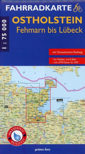 Die Fahrradkarte stellt den östlichen Teil der schleswig-holsteinischen Ostseeküste, einschließlich der Ferieninsel Fehmarn, dar. Geschichtsträchtige Orte finden sich darin wieder, wie die Hansestadt Lübeck mit ihrer weltberühmten Altstadt, die Hafenstadt Neustadt in Holstein, Eutin als einstiges geistiges Zentrum Nordeuropas sowie die Kreisstadt Ostholsteins, Oldenburg. Dass Ostholstein eine sehr beliebte Erholungsregion ist, dafür sprechen die Ostheilbäder Hohwacht, Heiligenhafen, Großenbrode, Dahme (Holstein), Kellenhusen (Ostsee), Grömitz, Scharbeutz, Travemünde und Timmendorfer Strand sowie die Ostseebäder Haffkrug, Sierksdorf und Niendorf. Der Naturpark Holsteinische Schweiz wird von einer reizvollen Seenlandschaft geprägt, deren Zentren die Orte Bad Malente, Eutin und Plön bilden. Die landschaftliche Vielfalt der Region, welche von einem gut ausgebauten touristischen Radwegenetz durchzogen wird, ist geprägt durch lange flach abfallende Strandabschnitte entlang der Küsten von Hohwachter und Lübecker Bucht, zahlreiche größere und kleine Binnenseen sowie den Verlauf von Trave, Schwartau und des Oldenburger Grabens. Die Karte wurde nach geographischen, landschaftlichen und touristischen Aspekten erarbeitet. So reicht der Blattschnitt von der Insel Fehmarn im Norden bis zur Hansestadt Lübeck im Süden. Westlich reicht sie bis Plön und den Selenter See sowie im Osten bis zu den Ostseeheilbädern Großenbrode und Dahme (Holstein). Die Fahrradkarte im Maßstab 1:75.000 ist 90 x 63 cm groß und wurde auf wasser- und reißfestem sowie recyclingfähigem Material gedruckt. Das Besondere an der Fahrradkarte ist, dass hierin die Oberflächen der Radstrecken in drei unterschiedlichen Qualitätsstufen dargestellt sind. Radwege/autofreie Strecken und Radrouten auf öffentlichen Straßen und Wegen sind f