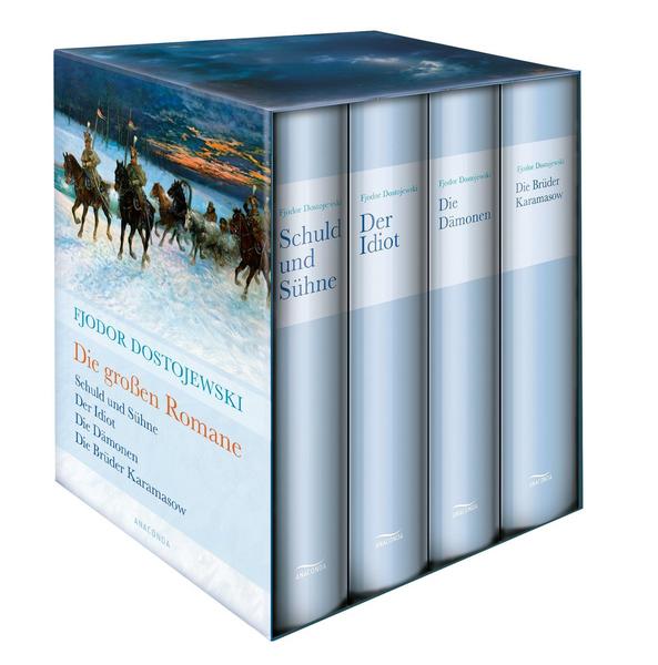 In der schönen Geschenk-Kassette sind die größten Romane des russischen Romanciers Fjodor Dostojewski zu entdecken. Seine Figuren sind feste Größen in der Weltliteratur: Der unverbesserliche Fürst Myschkin aus »Der Idiot«, dessen Gutmütigkeit und Naivität ihn in immer schlimmere Verwicklungen stürzen, ebenso wie der Student Raskolnikow, der in »Schuld und Sühne« mit seinem Gewissen ringt. »Die Dämonen« bieten ein großes Gesellschaftspanorama Russlands, wo junge Revolutionäre auf alte Liberale treffen. Die »Brüder Karamasow« führen tief in die Abgründe der menschlichen Seele.