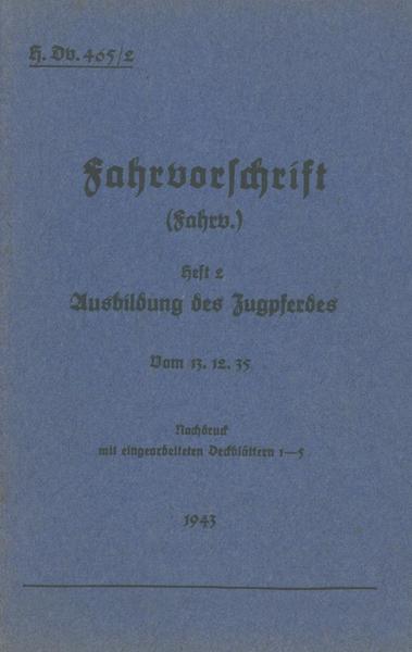 Die Reihe Fahrvorschrift ist ein Nachdruck der originalen militärischen Vorschrift. Dieser Teil 2 aus dem Jahr 1943 beschäftigt sich mit der ‚Ausbildung des Zugpferdes‘. Die Schriftart ist Fraktur und die auf den Seiten eingefügten Bilder können eine leichte Verdrehung der Bildachse haben. Die Originalgröße der Heeres-Druckvorschrift war DIN A6. In dieser Neuauflage aus dem Jahr 2019 im Format 12×19 cm werden die Seitenbilder bestmöglich in Originalgröße abgebildet.