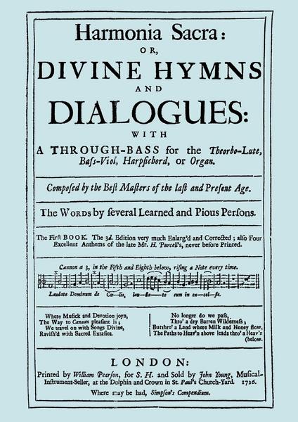 This is a facsimile of the 1726 edition of ‚The First Book – The 3d Edition, very much Enlarg’d and Corrected; also Four Excellent Anthems of the late Mr. H. Purcell’s, never before Printed.‘ Printed music by Henry Purcell et al. Please note there are some modern anotations, which are on the facsimile – they do not obscure the original.