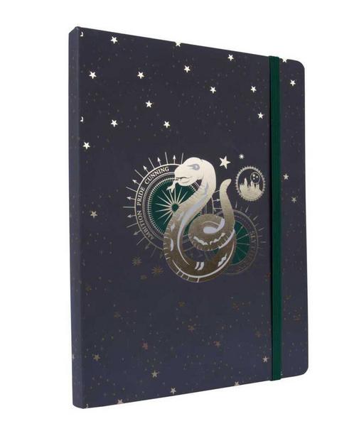 Celebrate your love of the HARRY POTTER™ films with this softcover notebook featuring an elegant graphic of HOGWARTS™ SLYTHERIN™ house. This notebook includes 240 ruled pages, a ribbon placeholder, and an elastic band.