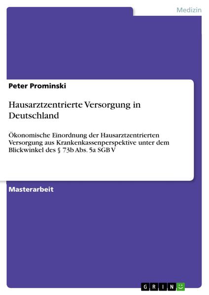 Masterarbeit aus dem Jahr 2012 im Fachbereich Gesundheit – Sonstiges, Note: 2,3, Universität Bielefeld (Fakultät für Gesundheitswissenschaften), Sprache: Deutsch, Abstract: Eine Evaluation der Verträge zur HzV gemäß 73b SGB V ist bis dato gesetzlich nicht vorgeschrieben. Mit Einführung des GKV-Finanzierungsgesetzes (GKV-FinG) zum 01.01.2011 wurde erstmals im 73b Abs. 5a SGB V festgeschrieben, dass bestimmte Leistungen der HzV ausschließlich aus Einsparungen und Effi-zienzreserven finanziert werden dürfen und die Verträge der HzV dem Grundsatz der Beitragssatzstabilität unterliegen. Ob Einsparungen und Effizienzreserven generiert werden und wie die HzV gemäß 73b Abs. 5a SGB V aus Sicht einer Krankenkasse ökonomisch einzuordnen ist, soll Aufgabe der vorliegenden Arbeit sein. Vor dem Hintergrund des 73b Abs. 5a SGB V wurde für diese Arbeit die Per-spektive der Krankenkassen gewählt, da die Generierung von Einsparungen und Effizienzreserven auf die Krankenkassen als Kostenträger zurückfallen und die Einhaltung der Beitragssatzstabilität ein wirtschaftliches Ziel der Krankenkassen darstellt, welches von deren Aufsichtsbehörden kontrolliert wird. […]