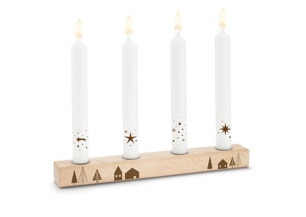 Eine wundervolle Ergänzung zu jeder Dekoration. Dieser fein gearbeitete Kerzenhalter aus hochwertigem Holz für vier Stabkerzen ist ein absoluter Hingucker für jeden Anlass und besonders f die Adventszeit hervorragend geeignet. Die wunderschöne Lasergravur macht den besonderen Reiz dieses Ständers aus. Maße: 30 x 4 x 3 cm Durchmesser Kerzeneinsatz (innen): ca. 2,2 cm Hergestellt in Deutschland