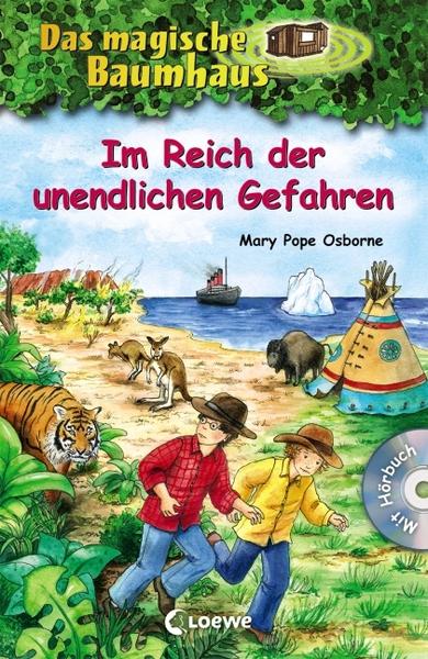 + Bücher, die Kinder gerne lesen wollen + Beliebte Themen: Abenteuer, Tiere und fremde Länder + Hochwertiges Hardcover + Mit vielen Illustrationen + Bereits über 10 Millionen verkaufte Bücher der Baumhaus-Reihe + Ausgewogenes Text-Bild-Verhältnis + Große Schrift + Kurze Kapitel + Anne und Philipp sind auf der Suche nach vier magischen Geschenken, um Morgan zu helfen, einen Fluch zu brechen. Zunächst bringt sie das magische Baumhaus in die Steppe zu den Indianern, wo eine Büffelherde sie zu überrennen droht. In Indien treffen die beiden auf einen zornigen Tiger und in Australien auf hungrige Dingos, die es auf ein Kängurubaby abgesehen haben. Nach all diesen Gefahren befinden sie sich schließlich auf einem riesigen Schiff und merken gerade noch rechtzeitig, dass es sich um die Titanic handelt. Die beigefügte Hörbuch-CD zum Band 17 macht diesen Sammelband zu einem Leseerlebnis der besonderen Art. Dieser Sammelband enthält die Einzelbände: „Auf der Fährte der Indianer“ (Bd. 16) „Im Reich des Tigers“ (Bd. 17) „Rettung in der Wildnis“ (Bd. 18) „Verschollen auf hoher See“ (Bd. 22) Die beliebte Kinderbuch-Reihe von Bestsellerautorin Mary Pope Osborne! Die Geschwister Anne und Philipp reisen mit dem magischen Baumhaus durch die Zeit. Sie erleben spannende Abenteuer, entdecken ferne Länder und lernen viele berühmte Persönlichkeiten kennen.