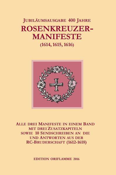Den uns heute sichtbaren Ursprung westlicher Einweihungslehren spiegeln die spirituellen Traditionen im Vorderen Orient spätestens seit dem 5. Jh. v. Chr. (Daoismus, Hellenismus). Als direkte Quelle aber sehen wir die Spiritualität des antiken Mittleren Orients: Arabien mit dem Königreich Sabah; das alte Groß-Syrien, worüber die offizielle Geschichte schweigt; das daraus erwachsene Sufitum, das sich im Islam legitimieren konnte – und dann das Rosenkreuzertum – Letzteres zur selben Zeit, als Rom die Herrschaft über alle Häupter, Stände und Gelehrten Europas übernahm… Durch die drei RC-Manifeste wurde die uralte Tradition des Rosenkreuzertums im Westen zum ersten Mal öffentlich belebt – obwohl noch immer als Geheimgesellschaft. Fama Fraternitatis und Confessio Fraternitatis waren Weckrufe. Die Chymische Hochzeit Christiani Rosencreutz – der dritte Posaunenstoß – zeigt den spirituellen Weg der Heiligen Hochzeit in Form einer Fabel, die sich vor allem an der operativen Alchemie orientiert, die damals noch sehr im Schwange war. Beide Wege: ob nur mystisch oder auch operativ, erstreben die Harmonisierung aller Gegensätze – im Kandidaten wie im Universum – am einfachsten darstellbar durch männliche und weibliche Polarität – aber auch durch den Gegensatz aus Erschaffung und Zerstörung (der indische Vishnu), durch und (jüdisch christianistisch-islamischer Ansatz) sowie (in allen spirituellen Hochtraditionen) durch das Paar Licht und Finsternis. Daraus entstand der zunehmend bewusste Weg geistiger Evolution: Aus fast vollständiger Unwissenheit zu vollkommener Kenntnis. Die gegenwärtige Ausgabe umfasst zum ersten Mal alle drei Manifeste in einem Band – und dazu noch ein Dutzend weiterer, zumeist noch nie neu publizierter Texte aus den Jahren 1612-1618, die bereits auf einander Bezug nehmen und sowohl den Zweck der RC-Bruderschaft erklären, als auch die Hauptkomponenten des geistigen Wegs aufzeigen: von Erkenntnis, Selbsterkenntnis und Selbsteinweihung bis zur Transfiguration.