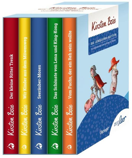 Ein Hoch auf das Lesen! – Zum Kirsten-Boie-Geburtstag: fünf ihrer schönsten Bücher in der Jubiläums-Edition. Für Klein und Groß, Sammler und Liebhaber: die exklusiv ausgewählte Kirsten-Boie-Werkausgabe zum 70. Geburtstag der renommierten und allseits beliebten Kinder- und Jugendbuchautorin mit ihren großen Romanen – in Kooperation mit ZEIT LEO. Ein besonderes Geschenk für alle, die Kirsten Boie lieben! Der Schuber vereint diese fünf Einzeltitel der Autorin: – Das Schönste von Lena und King-Kong (Sammelband) – Der kleine Ritter Trenk – Seeräubermoses – Wir Kinder aus dem Möwenweg – Vom Fuchs, der ein Reh sein wollte Der Verlag Friedrich Oetinger und der Zeitverlag Gerd Bucerius unterstützen die von Kirsten Boie gegründete Möwenweg-Stiftung mit einer Spende in Höhe von 5,00 EUR pro verkauftem Exemplar dieser Edition.