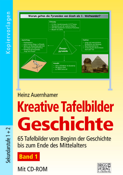 65 kreative Tafelbilder, die mehr bieten als Aufzählungen, Kästchen und Pfeile! Mit diesen neuartigen Tafelbildern zur Ereignis-, Alltags- und Mentalitätsgeschichte sowie zu bedeutenden Persönlichkeiten wird Ihnen die Vorbereitung Ihrer Geschichtsstunden erheblich erleichtert. Komplexe Sachverhalte und Zusammenhänge sind didaktisch sinnvoll, übersichtlich und prägnant auf das Wesentliche reduziert und bringen die entwickelten Stundenergebnisse auf den Punkt. Damit prägen sich die Lerninhalte bei den Schülern nachhaltig ein. Alle Tafelbilder bestehen ganz bewusst aus problematisierenden Fragestellungen, die die Schüler/-innen motivieren und berücksichtigen besonders Themen und Aspekte, für die sie sich interessieren und begeistern. Alle Seiten sind so gestaltet, dass Sie diese auch als Folien- oder Kopiervorlage nutzen können. Die Begleit-CD-ROM enthält alle in den Tafelbildern abgedruckten Abbildungen und Illustrationen im Großformat, sodass Sie diese Bildquellen im Unterricht einsetzen und somit eine unmittelbare Verknüpfung zu den Lerninhalten herstellen können. Das zusätzlich angebotene Bildmaterial kann unterstützend zur Erarbeitung einzelner Aspekte eingesetzt werden. Aus dem Inhalt: Wurden Adam und Eva wirklich am siebten Tag erschaffen? Warum ist der homo sapiens kein Menschenaffe mehr? Wie kamen die Menschen zur Metallverarbeitung? Wer war Tutanchamun? u.v.m.