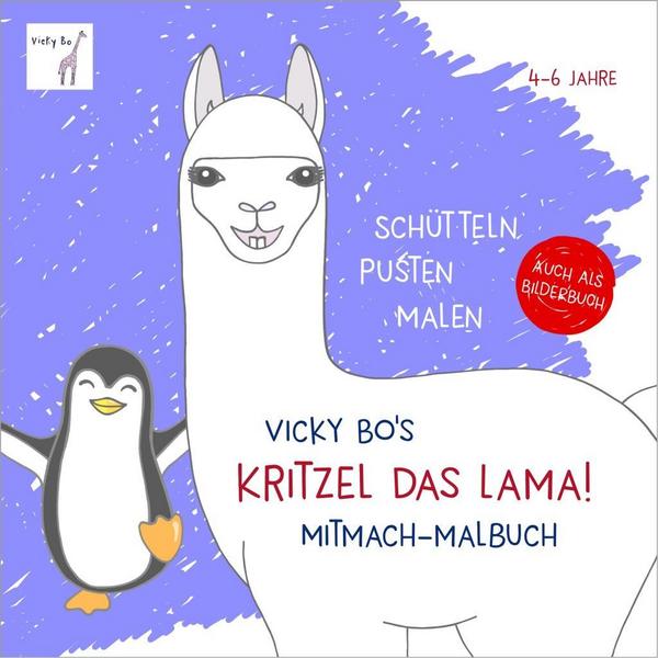 Kritzel das Lama! Ein Mitmach-Malbuch nicht nur zum Ausmalen. Es darf geschaukelt, gepustet und geschüttelt werden. Hier können die 4-jährigen bis 6-jährigen Kinder mit bunten Stiften die Abenteuer der Tiere ausmalen. Wie sehen die Kostüme von Koala, Maus und Papagei aus? Das Lama schwebt als Astronaut durch das Weltall und der Pinguin spielt den Vampir. Es wird geschüttelt, gepustet und gemalt bis das Konfetti fliegt. Komm, mach mit! Viel Spaß wünscht Vicky Bo! (Die Idee zu diesem Malbuch liefert das Bilderbuch „Kitzel das Lama!“ – ISBN 9783944956633) Für Kinder von 4 bis 6 Jahren