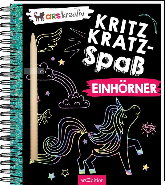 Kreativer Kratzelspaß! Der Kritzkratz-Spaß für Einhorn-Fans: In diesem Buch warten 18 Kratzseiten darauf, dass die kunterbunten Hintergründe entdeckt und mit schönen Motiven bemalt werden. Die zusätzlichen Anregungen helfen beim Zeichnen und Gestalten. Ein ideales Geschenk für Kinder ab 5 Jahren. Lässt Kinderaugen leuchten Hier wird gekratzt und gekritzelt! Mit dem beiliegenden Holzstift kann man wie durch Zauberhand bunte Bilder und Muster auf den schwarzen Seiten erscheinen lassen. Einfach zauberhaft! • 18 thematisch passende Hintergründe: Hinter der schwarzen Oberfläche warten bunte Muster und Bilder darauf, freigekratzt zu werden. • Mit Kratzstift zum Sofortloslegen: Der Holzstift liegt gut in der Hand und zaubert schöne Effekte • Mit Malideen und Anregungen: Zu jeder Kratzseite gibt es tolle Anregungen, was man auf dem Scratch-Papier alles malen und gestalten kann • Für unterwegs: Das Kritzkratz-Buch passt in jede Tasche, sodass im Auto, bei Oma und Opa, beim Warten oder im Kinderzimmer keine Langeweile aufkommt • Tolles Mitbringsel: Ein ideales Geschenk für Mädchen ab 5 Jahren