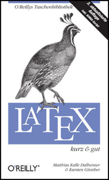 Latex kurz&gut aus O’Reillys Taschenbibliothek enthält alle oft verwendeten Befehle und Optionen, auf die jeder, der mit LaTeX arbeitet, immer wieder schnellen Zugriff benötigt. Die dritte Auflage wurde umfangreich aktualisiert und ergänzt. Neu hinzu gekommen sind Befehle zu Gleitobjekten, PDF-Erzeugung, umfangreiche Befehle zur Erzeugung von Tabellen und Makro-Erzeugung. Die Arbeit mit KOMA-Script zur typografischen Feinanpassung an europäische Konventionen wurde ebenfalls neu aufgenommen. Dieses Buch behandelt LaTeX2e-Befehle.