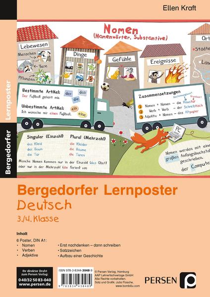 Eine Übersicht über die Satzzeichen oder eine Anleitung zum Aufbau einer Geschichte – das alles und weitere Übersichten müssen Sie in Zukunft nicht mehr selber basteln. Die pfiffig illustrierten Poster liefern zusammengefasstes Merkwissen für den Deutschunterricht. Die Kinder wollen sich noch einmal an die Merkmale der Wortarten anschauen? Kein Problem – mit einem Blick aufs Poster ist alles einfach und klar! Poster zu folgenden Themen sind enthalten: Nomen Verben Adjektive Rechtschreibstrategien Satzzeichen Aufbau einer Geschichte Weitere praktische Poster finden Sie hier: Arbeits- und Sozialverhalten Deutschunterricht in der 1./2. Klasse Mathematikunterricht in der 1.-4. Klasse.