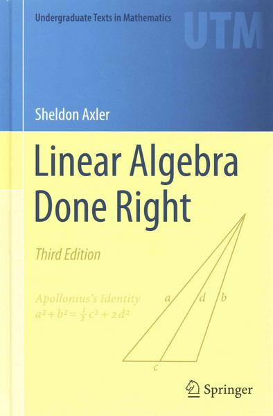 This best-selling textbook for a second course in linear algebra is aimed at undergrad math majors and graduate students. The novel approach taken here banishes determinants to the end of the book. The text focuses on the central goal of linear algebra: understanding the structure of linear operators on finite-dimensional vector spaces. The author has taken unusual care to motivate concepts and to simplify proofs. A variety of interesting exercises in each chapter helps students understand and manipulate the objects of linear algebra. The third edition contains major improvements and revisions throughout the book. More than 300 new exercises have been added since the previous edition. Many new examples have been added to illustrate the key ideas of linear algebra. New topics covered in the book include product spaces, quotient spaces, and dual spaces. Beautiful new formatting creates pages with an unusually pleasant appearance in both print and electronic versions. No prerequisites are assumed other than the usual demand for suitable mathematical maturity. Thus the text starts by discussing vector spaces, linear independence, span, basis, and dimension. The book then deals with linear maps, eigenvalues, and eigenvectors. Inner-product spaces are introduced, leading to the finite-dimensional spectral theorem and its consequences. Generalized eigenvectors are then used to provide insight into the structure of a linear operator.