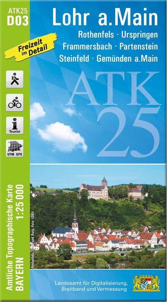 Wer es genau wissen will, greift zur ATK25. Diese Kartenserie im Maßstab 1:25000 bildet mit ihrer detaillierten Darstellung das komplette Verkehrsnetz mit allen Straßen und Wegen ab. 237 Einzelblätter stellen Bayern flächendeckend dar. Ein Kartenblatt umfasst ca. 21 km x 22 km. Was bietet die ATK25? • individuelle Freizeitgestaltung mit allen ausgeschilderten Wander- und Radwanderwegen • sichere Orientierung auch abseits der markierten Routen • umfangreiches Spektrum an Freizeiteinrichtungen und Sehenswürdigkeiten • anschauliche Wiedergabe der Geländeformen Das Kartenblatt ATK25-D03 Lohr a. Main REGION: Spessart, Mainviereck ORTE: Rothenfels, Gemünden a.Main, Frammersbach, Partenstein, Steinfeld, Urspringen, Neustadt a.Main, Rechtenbach