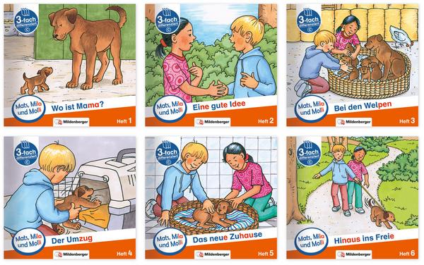 Alle Kinder lernen die gleiche Geschichte kennen. Jedes Kind kann die Geschichte in 6 Folgen (Heft 1 bis 6) entsprechend seiner Fähigkeiten (Schwierigkeitsstufe A, B oder C) erlesen. Anschließend können alle Kinder gemeinsam über diese eine Geschichte sprechen und diskutieren. Die unterschiedlichen Zugänge zu den 6 Fortsetzungsgeschichten führen zu einem gemeinsamen Erlebnis. Der Inhalt stiftet Gemeinsamkeit. Kein Kind muss allein zurück bleiben. Im Laufe der Zeit kann jedes Kind sich an den drei Schwierigkeitsstufen der Geschichten versuchen. So wird Lernfortschritt ganz praktisch erfahrbar. Das spornt an und macht Mut. • Heft 1: Wo ist Mama? • Heft 2: Eine gute Idee • Heft 3: Bei den Welpen • Heft 4: Der Umzug • Heft 5: Das neue Zuhause • Heft 6: Hinaus ins Freie Schwierigkeitsstufe C Typografische Mittel – Weniger einfach (Standard Plus) • Silbenmarkierung • Fibel-Schrift • zeilenübergreifende Sätze in Sinnabschnitten • farbige Illustrationen zu jeder Textseite Sprachliche Mittel • Attributergänzungen • atmosphärisch verdichtende Begleitsätze zur wörtlichen Rede • Passivsatzkonstruktionen • eine fortlaufende Geschichte wird erzählt