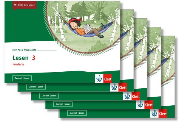 Die Anoki-Übungshefte sind perfekt zum selbstständigen Arbeiten im Unterricht und zu Hause. Über Online-Lösungen zum kostenlosen Download können sich die Kinder sogar selbst kontrollieren. Die motivierenden Übungshefte gibt es für die Fächer Deutsch, Mathematik, Englisch und Sachunterricht – für die Vorschule sowie für die Klassen eins bis vier. Zum Differenzieren eignen sich besonders gut die Förderhefte. Diese können parallel zu den Basisheften eingesetzt werden. Lesen 3 | Fördern im 5er-Paket bietet: Überprüfen von Aussagen, Erkennen des roten Fadens, Erkennen von Schlüsselwörtern, Reimen undwörtlicher Rede, W-Fragen zum Text, Personenbeschreibungen, Steckbriefe, Märchen,Erzählungen, Sachtexte, Rezepte, Gedichte undPiktogramme. Jetzt mehr erfahren über die Anoki-Übungshefte: