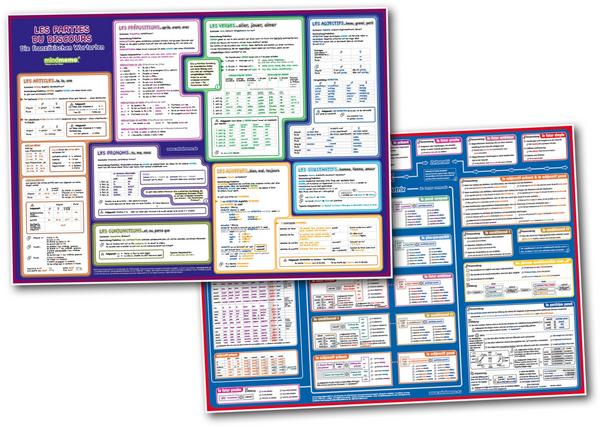 Produktname | Mindmemo Lernposter 2er Set – Französische Zeiten + Wortarten Grammatik lernen Grundwissen Lernhilfe |