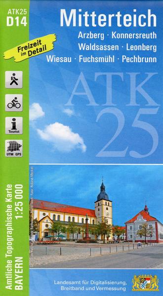 Wer es genau wissen will, greift zur ATK25. Diese Kartenserie im Maßstab 1:25000 bildet mit ihrer detaillierten Darstellung das komplette Verkehrsnetz mit allen Straßen und Wegen ab. 237 Einzelblätter stellen Bayern flächendeckend dar. Ein Kartenblatt umfasst ca. 21 km x 22 km. Was bietet die ATK25? • individuelle Freizeitgestaltung mit allen ausgeschilderten Wander- und Radwanderwegen • sichere Orientierung auch abseits der markierten Routen • umfangreiches Spektrum an Freizeiteinrichtungen und Sehenswürdigkeiten • anschauliche Wiedergabe der Geländeformen Kartenblatt ATK25-E14 Mitterteich: REGION: Oberpfalz, Fichtelgebirge, Stiftland, Naab-Wondreb-Senke ORTE: Arzberg, Konnersreuth, Waldsassen, Leonberg, Wiesau, Fuchsmühl, Pechbrunn