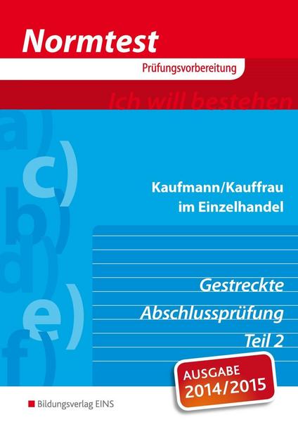 die optimale Vorbereitung auf die gestreckte Abschlussprüfung Teil 2 nach neuer Prüfungsordnung für Einzelhandelskaufleute deckt alle Prüfungsgebiete der Abschlussprüfung nach aktuellem Prüfungskatalog ab beinhaltet den Prüfungsbereich Geschäftsprozesse im Einzelhandel mit programmierten und ungebundenen Aufgabenstellungen inklusive Lösungen enthält ein Stichwortverzeichnis zum Nachschlagen ergänzend stehen ‚Normtest‘ für die Abschlussprüfung Teil 1 (Bestell-Nr. 86411) und für die Mündliche Prüfung (Bestell-Nr. 86402) zur Verfügung
