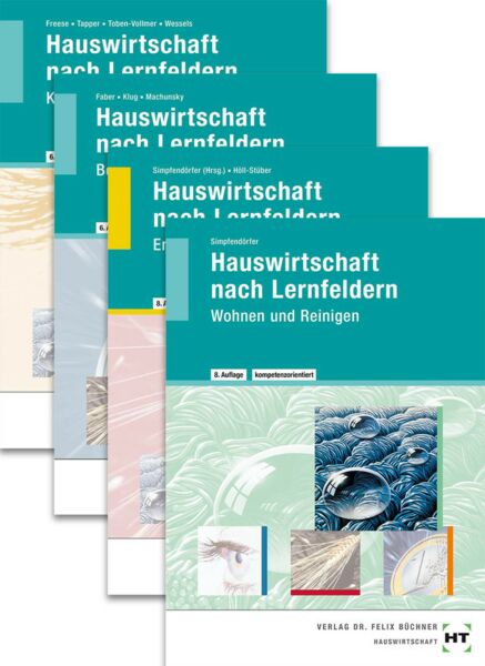 Bei gleichzeitiger Bestellung von „Hauswirtschaft nach Lernfeldern Wohnen und Reinigen“ (ISBN 978-3-582-86584-7), „Hauswirtschaft nach Lernfeldern Ernähren und Verpflegen“ (ISBN 978-3-582-25264-7), „Hauswirtschaft nach Lernfeldern Beschaffen, Lagern, Vermarkten“ (ISBN 978-3-582-10817-3) und „Hauswirtschaft nach Lernfeldern Kommunizieren und Betreuen“ (ISBN 978-3-582-28233-0) erhalten Sie die Bände zum Paketpreis. Handlungsorientiert ausbilden! Diese Fachbuchreihe umfasst in ihren 4 Themenbänden alle Lerninhalte für die Ausbildung zur Hauswirtschafterin/zum Hauswirtschafter. Sie orientiert sich an den veränderten Anforderungen an hauswirtschaftliche Fachkräfte. Die 13 Lernfelder des Rahmenlehrplans bilden die Grundlage des Lehrwerkes. Das besondere Merkmal dieser Reihe ist die thematische Zusammenstellung der 4 Themenbände, die auch einzeln von anderen Lerngruppen, etwa aus dem pflegerischen und pädagogischen Bereich, verwendet werden können. Ebenso kann der Unterricht nach Lernfeldern praktiziert werden – jeweils nur ein Band wird notwendig.