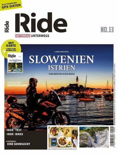 Slowenien ist ein Geheimtipp für Motorradfahrer. Hier genießt man verkehrsarme, kurvige Straßen in den Alpenausläufern, in dichten Wäldern, an glasklaren Flüssen und Seen dank intakter Natur. Legale Offroad-Pisten inklusive. Die Menschen sind gastfreundlich und hilfsbereit. Istrien ist die mediterrane Verlängerung dieser Qualitäten und bietet neben attraktiven Küsten mit venezianisch anmutenden Orten jede Menge Fahr- und Entdeckerfreuden im bergigen Hinterland. RIDE 13 Slowenien/Istrien hat 7 Tagestrips inklusive einer Offroad-Tour für höchsten Motorrad-Genuss erarbeitet und offeriert wie immer eine bunte Mischung an nutzwertigen Themen. Dazu gibt es zahlreiche Tipps zu einzigartigen Erlebnissen in Sachen Natur, Kultur, Kulinarik, Übernachten, Action und Abenteuer.