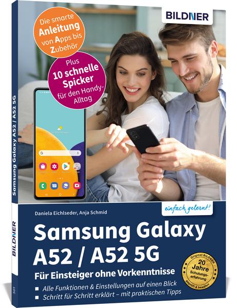 Die verständliche Anleitung für Ihr Smartphone: Alle Funktionen & Einstellungen auf einen Blick Schritt für Schritt erklärt – mit praktischen Tipps Mit diesem smarten Praxisbuch gelingt Ihnen der schnelle und sichere Einstieg in Ihr Smartphone. Lernen Sie die Samsung Galaxy-Modelle A52, A52 5G und A52s 5G kennen und beherrschen! Anschauliche Anleitungen, Beispiele und Bilder zeigen Ihnen gut nachvollziehbar, wie Sie Ihr mobiles Gerät optimal handhaben – von der Ersteinrichtung und Personalisierung über die große Funktionsvielfalt bis zu den wichtigsten Anwendungen . Nutzen Sie darüber hinaus die übersichtlichen Spicker-Darstellungen : Damit können Sie jene Bedienungsschritte, die man am häufigsten braucht, aber immer wieder vergisst, auf einen Blick finden und umsetzen. Freuen Sie sich auf viele hilfreiche Tipps und legen Sie ganz einfach los! Aus dem Inhalt: Alle Bedienelemente der Samsung Galaxy A52-Modelle auf einen Blick Ersteinrichtung und Tipps zum Umzug Google-Konto erstellen und verwalten Die Benutzeroberfläche Ihres Smartphones personalisieren Apps aus dem Play Store herunterladen Kontakte anlegen und im Adressbuch verwalten Anrufe tätigen und SMS austauschen Nachrichten über Mail und WhatsApp versenden und empfangen Uhr, Kalender, Maps und andere praktische Apps nutzen Fotos sowie Videos aufnehmen, verwalten und teilen Ins Internet gehen über WLAN und mobile Daten Updates, Datenschutz und Sicherheit