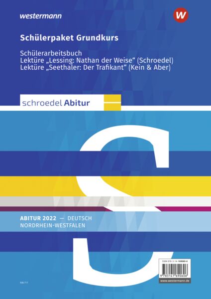 Für das Abitur 2022 in NRW wurden für den Grundkurs Deutsch folgende zentrale Inhaltsfelder und konkretisierte Erwartungen festgelegt und in den Schülerarbeitsbüchern besonders vertiefend für die Schülerinnen und Schüler aufbereitet: Strukturell unterschiedliche Dramen aus unterschiedlichen historischen Kontexten – Gotthold Ephraim Lessing: Nathan der Weise Lyrische Texte zu einem Themenbereich aus unterschiedlichen historischen Kontexten – ‚Unterwegs sein‘ – Lyrik von der Romantik bis zur Gegenwart Strukturell unterschiedliche Erzähltexte aus unterschiedlichen historischen Kontexten – Robert Seethaler: Der Trafikant Sprachvarietäten und ihre gesellschaftliche Bedeutung – Dialekte und Soziolekte Das Grundkurspaket für die Qualifikationsphase enthält neben dem Schülerarbeitsbuch beigelegt die Schroedel Lektüre ‚Nathan der Weise‘ und die Taschenbuchausgabe Robert Seethaler: Der Trafikant aus dem Kein & Aber Verlag . Weitere Texte sind in das Schülerarbeitsbuch integriert.