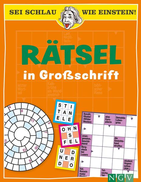 Bunter Rätselspaß in Großschrift! Werden Sie schlau wie Einstein! Rätselspaß für kluge Köpfe 160 knifflige und abwechslungsreiche Rätsel in Farbe Extragroße Schrift für entspannten Rätselspaß Alle Auflösungen im übersichtlichen Lösungsteil Bunter Rätselspaß in Großschrift – werden Sie schlau wie Einstein! Sie rätseln für ihr Leben gern, aber die Rätselschrift ist Ihnen oft viel zu klein? Hier kommt die Lösung: Rätselspaß in extragroßer Schrift für ermüdungsfreies Lesen und Knobeln! Ob Kreuzworträtsel, Silbenrätsel, Wabenrätsel, Bilderrätsel, Zahlenrätsel, Sudoku und vieles mehr: Eine bunte Mischung der beliebtesten Rätselarten bringt Ihre grauen Zellen so richtig in Schwung und sorgt für jede Menge Spaß und gute Laune. Auf geht’s in die nächste Rätsel-Runde!