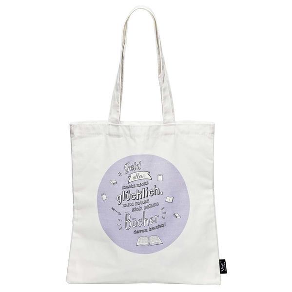 Machen Sie mit dem modischen Accessoire jeden Ihrer Einkäufe zu einem Erlebnis voller Freude. Der typografisch aufwändig gestaltete Spruch »Geld allein macht nicht glücklich, man muss sich schon Bücher davon kaufen« bringt jeden Leser gewiss zum Schmunzeln und verdeutlicht nochmal den Schatz, der zwischen Buchseiten wohnt. Der robuste Stoff der Tasche eignet sich perfekt, um den Einkauf sicher nach Hause zu bringen.