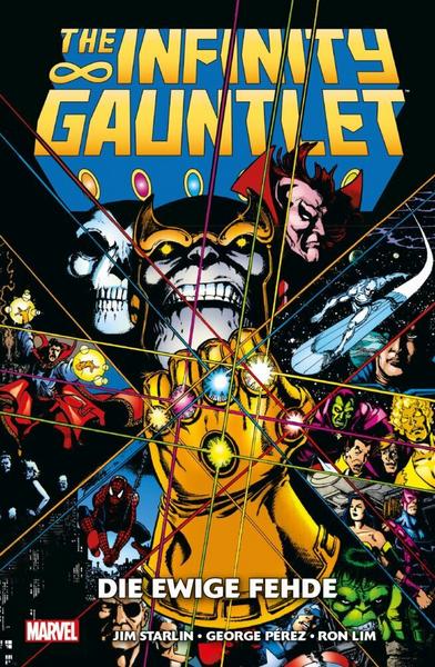 KRIEG UM DEN KOSMOS Der wahnsinnige Titan Thanos wird dank des Handschuhs mit den Infinity-Steinen zum mächtigsten Wesen im gesamten Universum, das sich nun seinem Willen beugen muss. Um Mistress Death seine Liebe zu beweisen, löscht Thanos sogar die Hälfte allen Lebens im Kosmos aus. Für den verzweifelten Versuch, den finsteren Giganten in einer gewaltigen Schlacht doch noch irgendwie aufzuhalten, tun sich Helden wie Captain America, Iron Man, Thor, Dr. Strange, Spider-Man, Drax, Wolverine und Hulk sogar mit dem Schurken Dr. Doom zusammen. Selbst die kosmischen Götter ziehen gegen Thanos und das drohende Verhängnis in den Krieg. Tipp zur Lese-Reihenfolge: Das Klassiker-Event aus den frühen 90ern erfasst ihr am besten, indem ihr nach diesem Band The Infinity War und abschließend The Infinity Crusade lest.