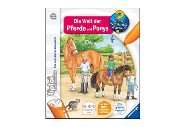 Das Glück der Erde liegt auf dem Rücken der Pferde! Auf dem Hof von Familie Lüttges entdecken Kinder spielerisch die Welt der Pferde und Ponys. Was gibt es bei der Stallarbeit und Fellpflege zu beachten? Wie wird ein Pferd gesattelt und aufgezäumt? Was nimmt man bei einem Ausritt mit? Mit tiptoi erleben Kinder Ferien auf dem Reiterhof. Egal ob sie zum ersten Mal Stallluft schnuppern oder selbst schon reiten können, in diesem Buch gibt es viel über ihre liebsten Vierbeiner zu lernen. Was macht der Traktor auf dem Feld? Wann kommt die Feuerwehr? Wie groß wird ein Pony? Die interaktive Sachbuchreihe tiptoi Wieso? Weshalb? Warum? beantwortet wichtige Kinderfragen auf Augenhöhe. Auf den liebevoll illustrierten Seiten tauchen die Kinder in eine Welt ein, die durch zahlreiche authentische Geräusche lebendig wird. Das Sachwissen wird altersgerecht erklärt und ist fachlich geprüft. Die Kinder können sich dank der einfachen und intuitiven Nutzung mit dem tiptoi-Stift das Wissen selbst erschließen. Sie lernen, Zusammenhänge zu begreifen und erfahren spannende Informationen über ihren Alltag und ihre Umwelt. Tolle Geschichten, Lieder und unterhaltsame Spiele laden dabei immer wieder zum selbstständigen Entdecken und Erforschen ein. tiptoi-Stift nicht enthalten. Muss separat erworben werden. Dieses Produkt hat keine tiptoi-CREATE-Aufnahmefunktion.