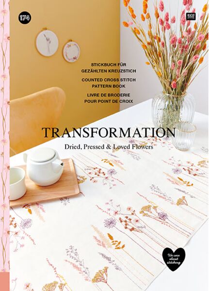 Transformation bedeutet Veränderung, Verwandlung. Wir haben dieses Wort für unsere neue Kollektion gewählt, weil unsere Designs inspiriert sind vom Charme getrockneter und gepresster Blumen, Blüten und Gräser. Durch den Verwandlungsprozess des Trocknens und Pressens wird die Einzigartigkeit der Pflanze bewahrt und ihr Körper abstrakt. Diese Schönheit halten wir in unseren Kreuzstich-Designs fest.